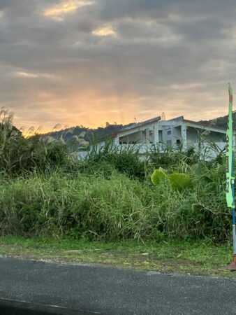 家路へに途中、山間へ沈む夕日の雲間から光が差し込み、今日の日が無事に終わり、ホッとした瞬間